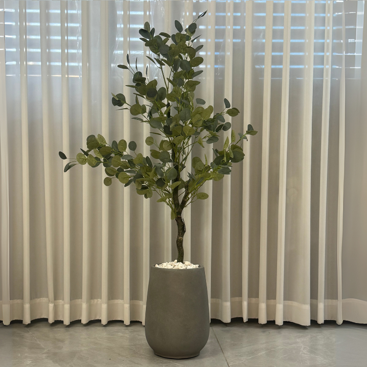 עציץ אקליפטוס + כד מעוצב לוסיאן גובה הכד: 35 ס"מ | קוטר הכד: 22 ס"מ | גובה העץ: 1.10 ס"מ | גובה כד + עץ: 1.35 מטר