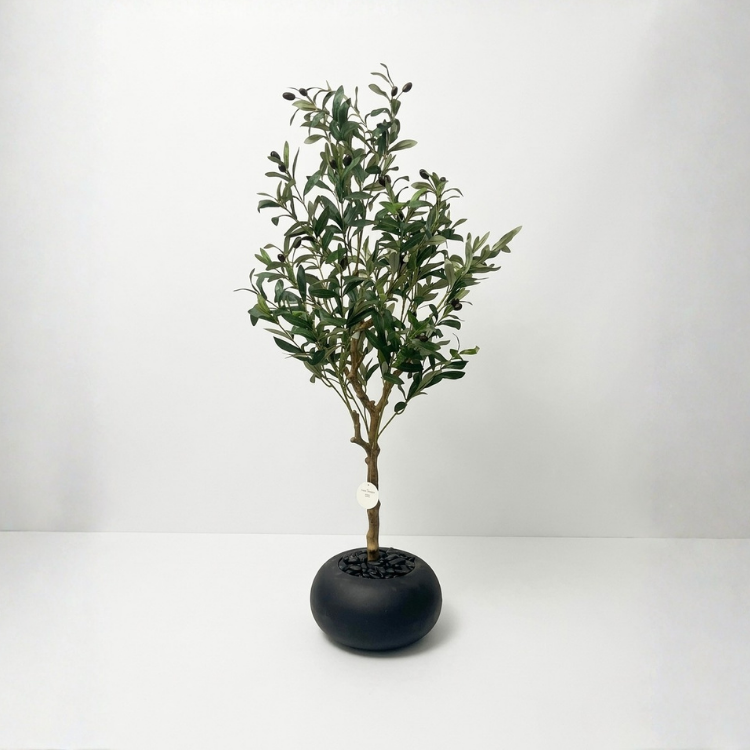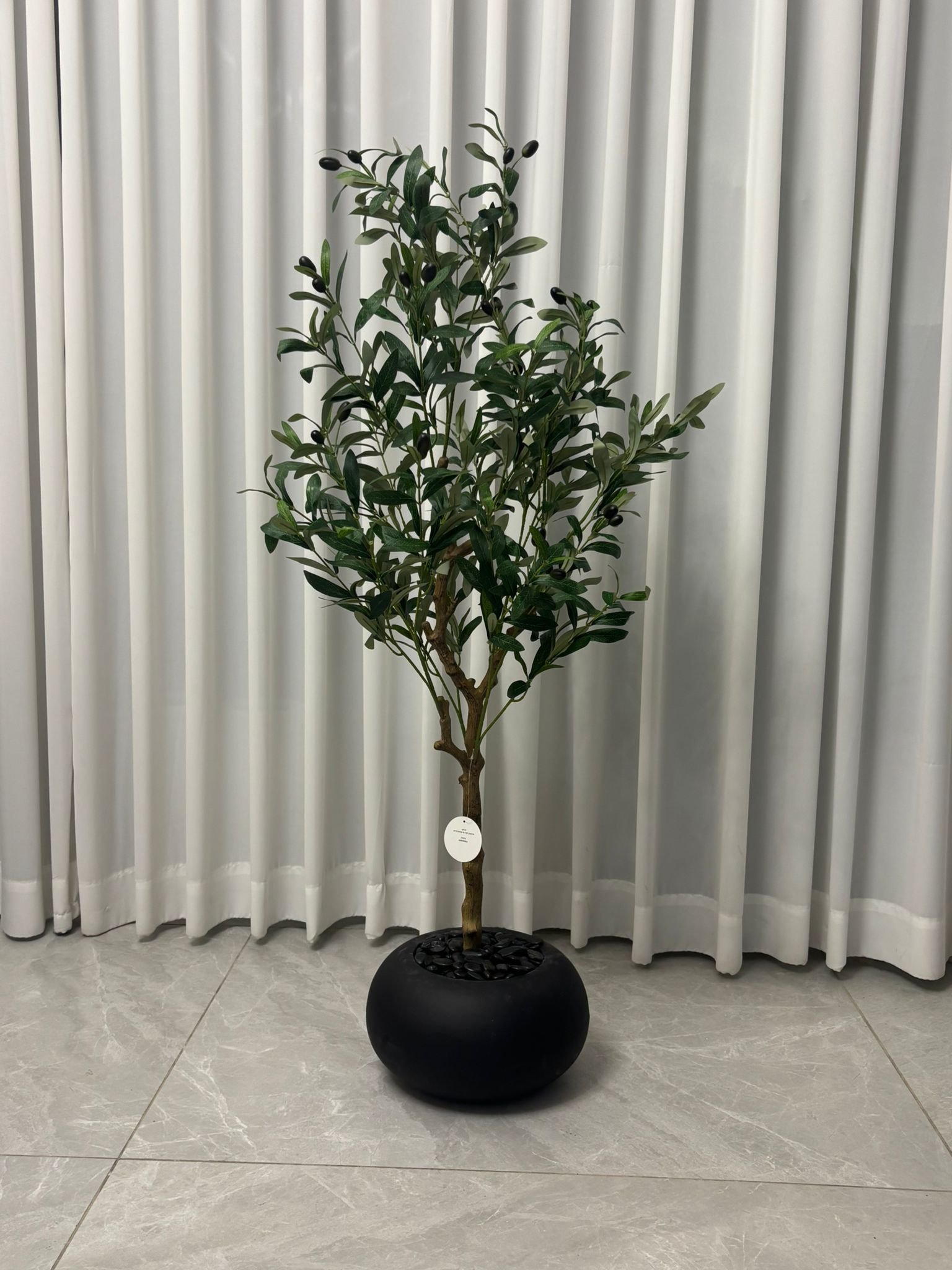 עץ זית מלאכותי + כד מעוצב אלמה גובה הכד: 18 ס"מ | קוטר הכד: 22 ס"מ | גובה העץ: 1.2 | גובה הכד + עץ: 1.25