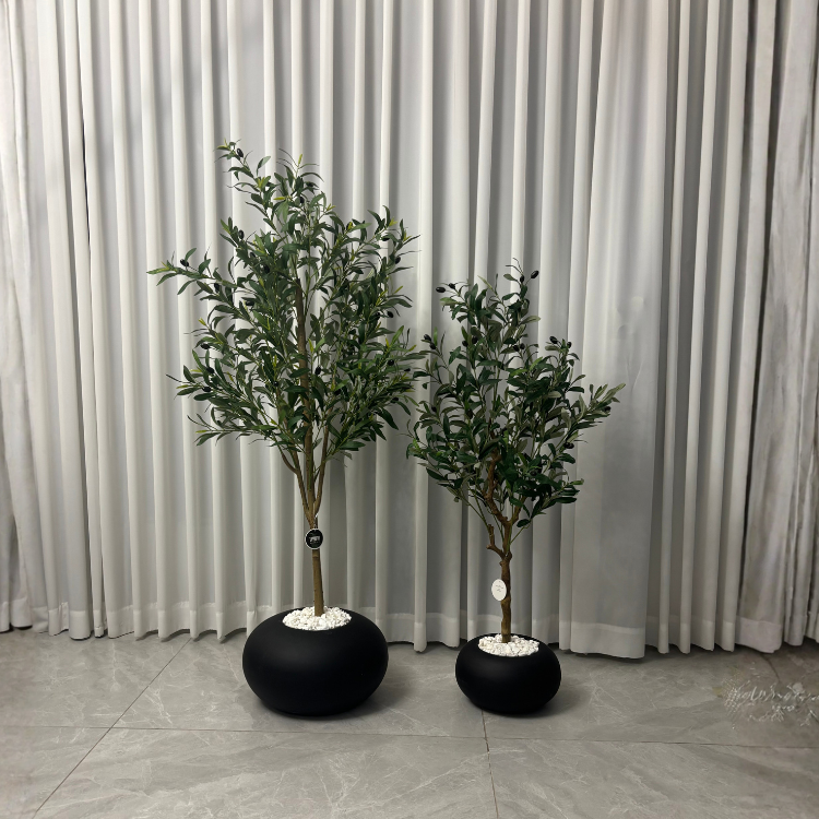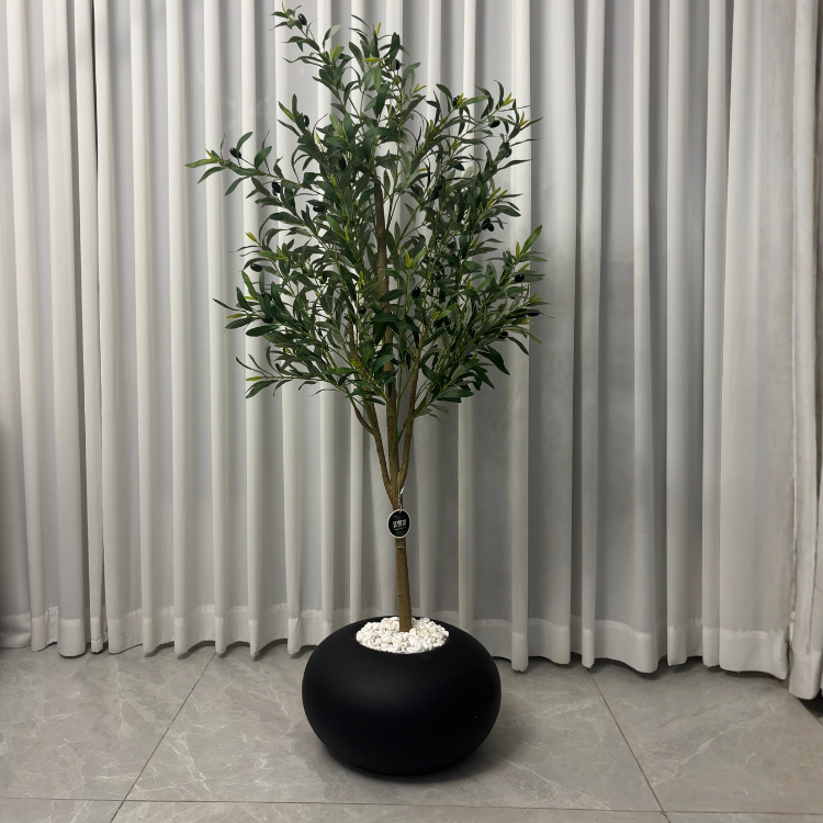 עציץ זית+ כד מעוצב אלמה גובה הכד: 25 ס"מ | קוטר הכד: 30 ס"מ | גובה העץ: 1.5 | גובה הכד + עץ: 1.65