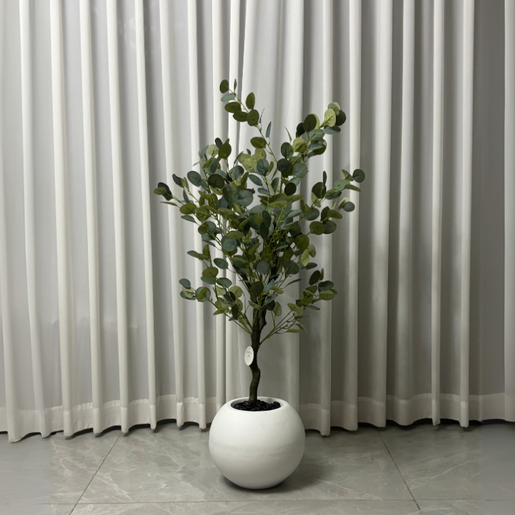 עציץ אקליפטוס + כד מעוצב סלרנו גובה הכד: 26 ס"מ | קוטר הכד: 25 ס"מ | גובה העץ: 1.15 ס"מ | גובה כד + עץ: 1.30 מט