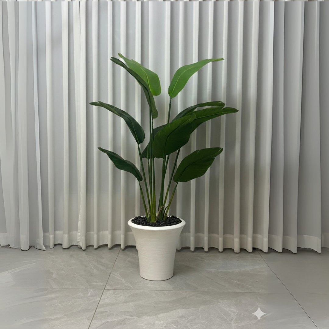 עציץ ציפור גן עדן + כד מעוצב לוסיאן גובה הכד: 30 ס"מ | קוטר הכד: 33 ס"מ | גובה העץ: 1.40 ס"מ | גובה כד + עץ: 1.50 מטר